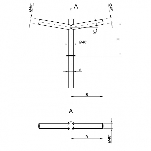 Двухрожковые кронштейны К21-0,2-0,2-1-1 предназначены для крепления светильника на трубчатой опоре освещения.