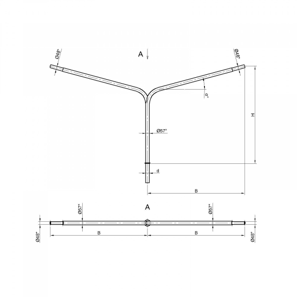 Двухрожковые кронштейны К3-2,0-1,5-1-1 предназначены для крепления светильника на трубчатой опоре освещения.