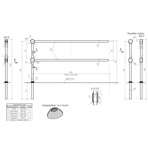 Перильное ограждение ПО-1 изготавливается из круглой или профильной стальной трубы, круга или полосы. Конструкции ограждений подразделяются в зависимости от способа изготовления: модульные, литые, сварные, болтовые, комбинированные. Форма и внешний вид ограничения зависят от заказа.