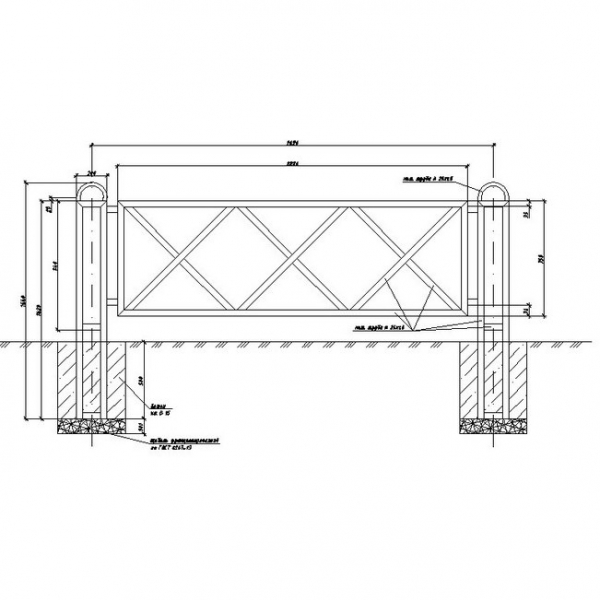 Устанавливается перильное ограждение ПО-1 путем бетонирования каждой ножки, которые будут выведены в нижней части изделия.